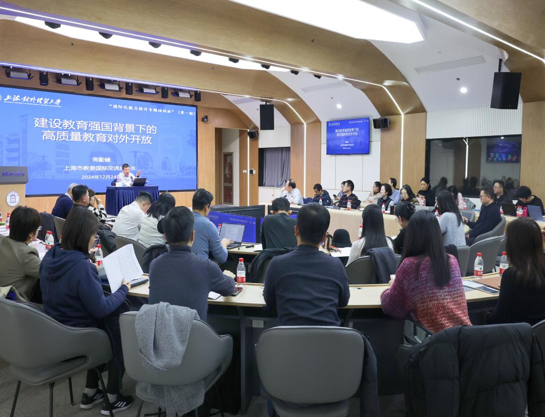 为深入贯彻上海教育高水平对外开放新部署新要求,12月24日上午,学校邀请上海市教委国际交流处处长周勤健就“建设教育强国背景下的高质量教育对外开放”作专题辅导报告。副校长姜秀珍、各学院负责人及代表、外事处、教务处、研究生院等相关职能部门负责人及外事工作相关人员等参加报告会。报告会由外事处处长金泉主持。