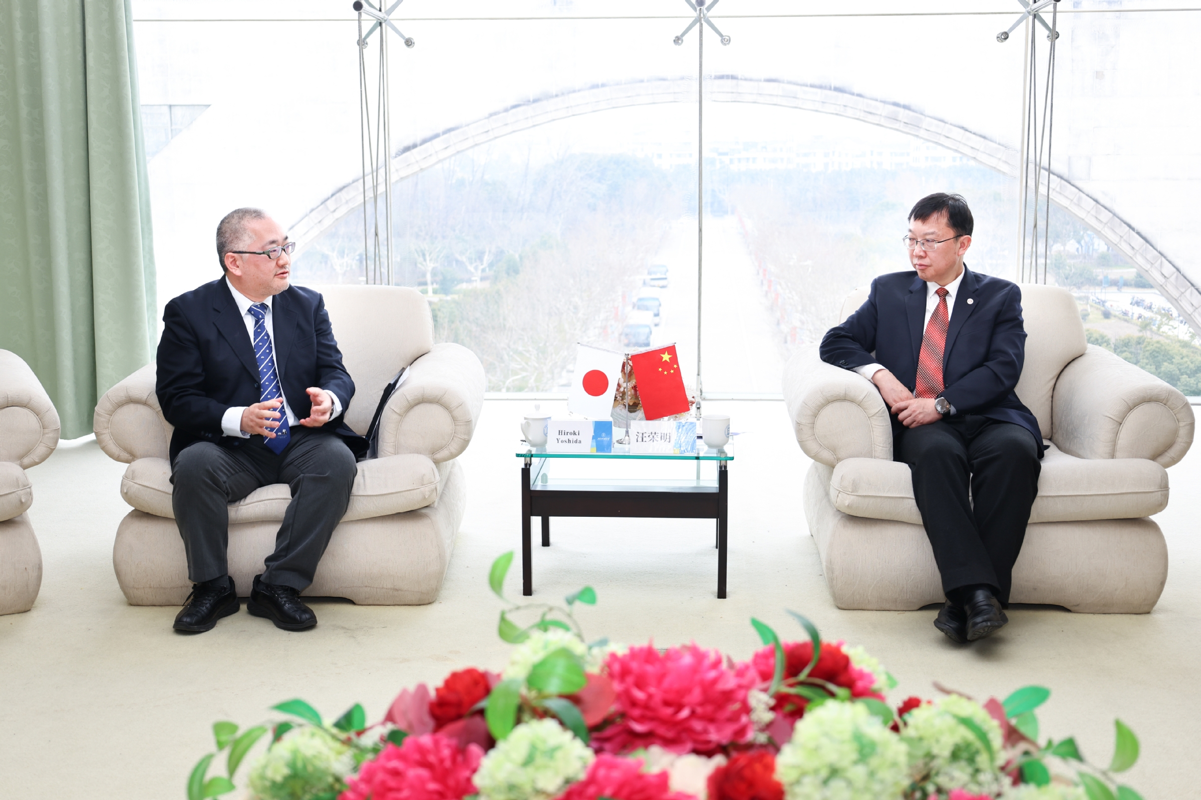 2月25日,必赢626net入口首页校长汪荣明会见日本关东学院大学(Kanto Gakuin University)副校长吉田广毅(Hiroki Yoshida)教授一行,学校外事处、国际商务外语学院相关负责人陪同会见。
