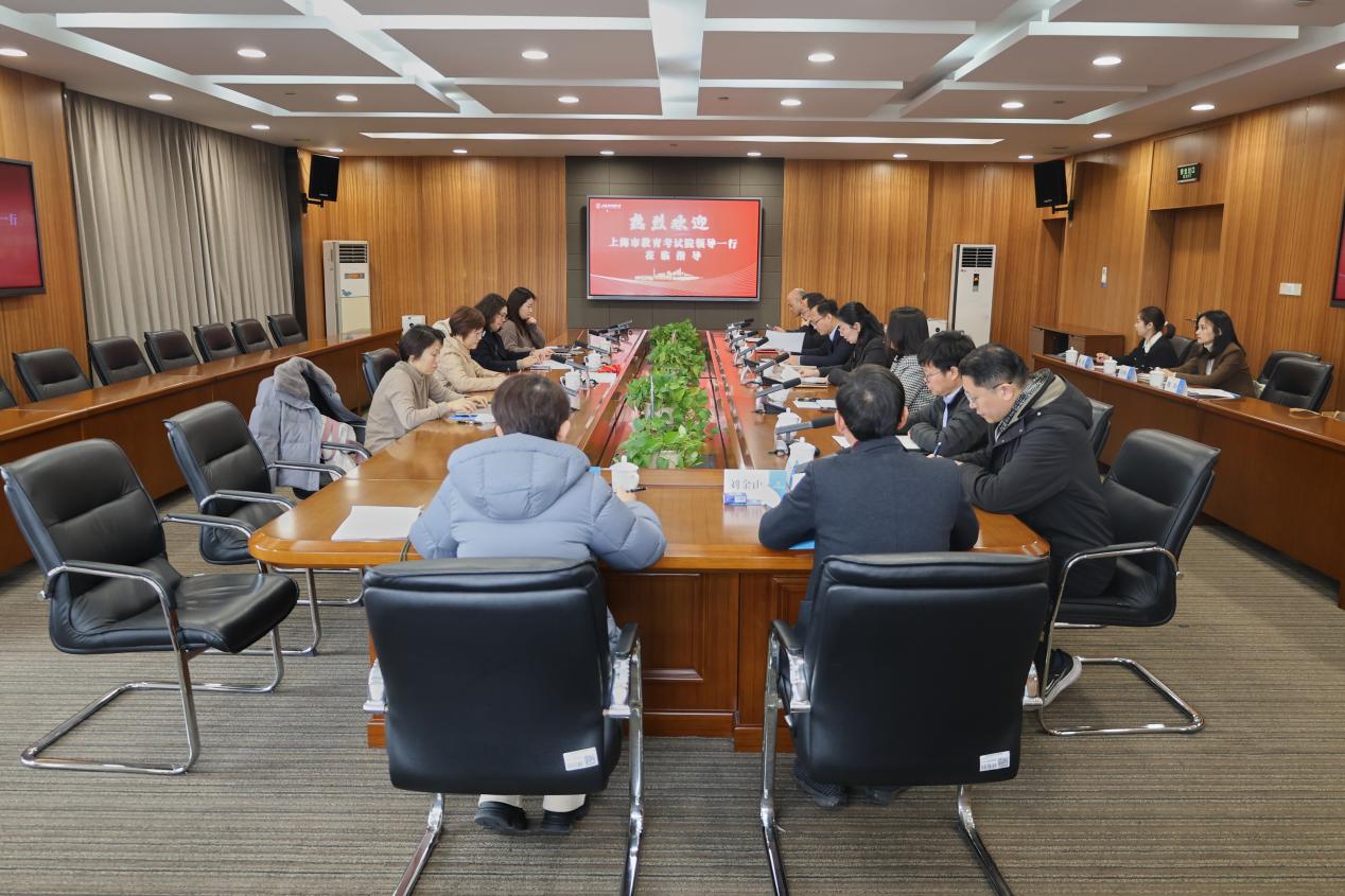 近日,上海市教育考试院院长章波、党委副书记汤军、高招办主任刘学岚及招生主管杨雯雯一行来校检查指导2025年春季考试招生自主测试准备工作。校党委副书记、副校长沈艺出席并主持座谈会,招生就业处、教务处、后勤处、信息技术中心、保卫处等相关部门负责人参加座谈。