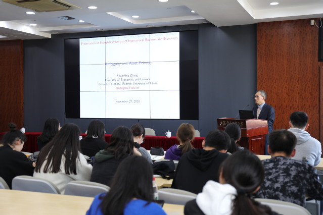 聘任仪式结束后,张顺明教授作了题为《暧昧性与资产定价》的学术报告,报告由金融管理学院院长凌婕主持。张教授阐述了暧昧性的经济学来源,解释了风险与暧昧性之间的区别,并说明奈特不确定性与暧昧性的关系,以及暧昧厌恶的表现定理。他还介绍了暧昧性在资产定价理论中的最新研究进展。张顺明教授的报告高屋建瓴,旁征博引,见解新颖独到,为在场师生带来了一场丰盛的学术盛宴,使在座师生深受启发,获益匪浅。