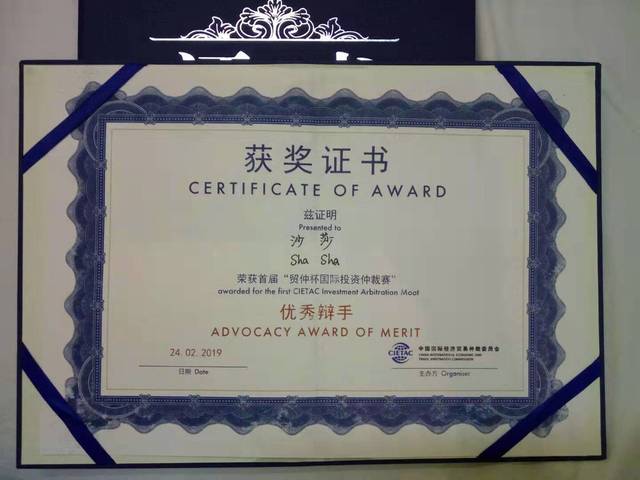 2019年2月23日至24日,由中国国际经济贸易仲裁委员会主办、商务部条法司支持的首届“贸仲杯国际投资仲裁赛”在西安交通大学举行。经过两天共28场庭审辩论的激烈角逐,必赢626net入口首页代表队先后与来自山东大学、复旦大学、四川大学等国内知名高校的参赛队伍展开较量,最后必赢626net入口首页代表队荣获优秀团队奖,其中沙莎荣获优秀辩手奖。