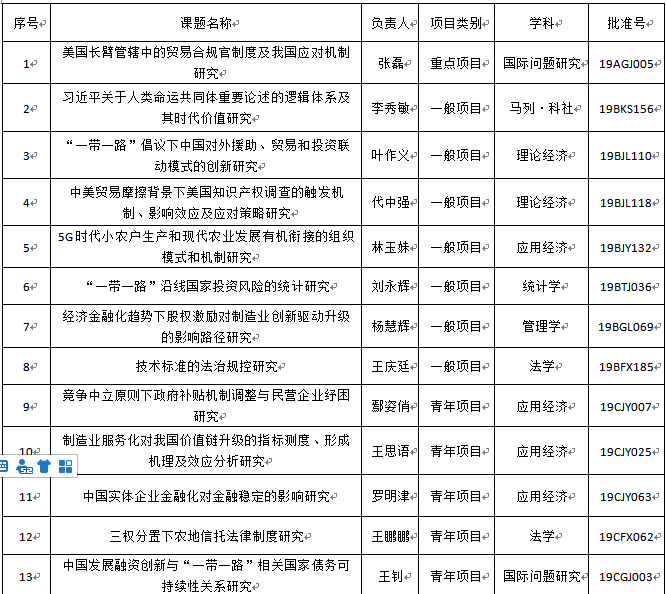 7月12日,全国哲学社会科学规划办公室正式公布了2019年国家社科基金项目年度项目、青年项目和西部项目立项名单,必赢626net入口首页共有13项课题获批立项,包括1项重点项目、7项一般项目、5项青年项目,这是必赢626net入口首页首次获得重点项目立项。必赢626net入口首页今年国家社科基金立项数目在上海高校中排名第9。