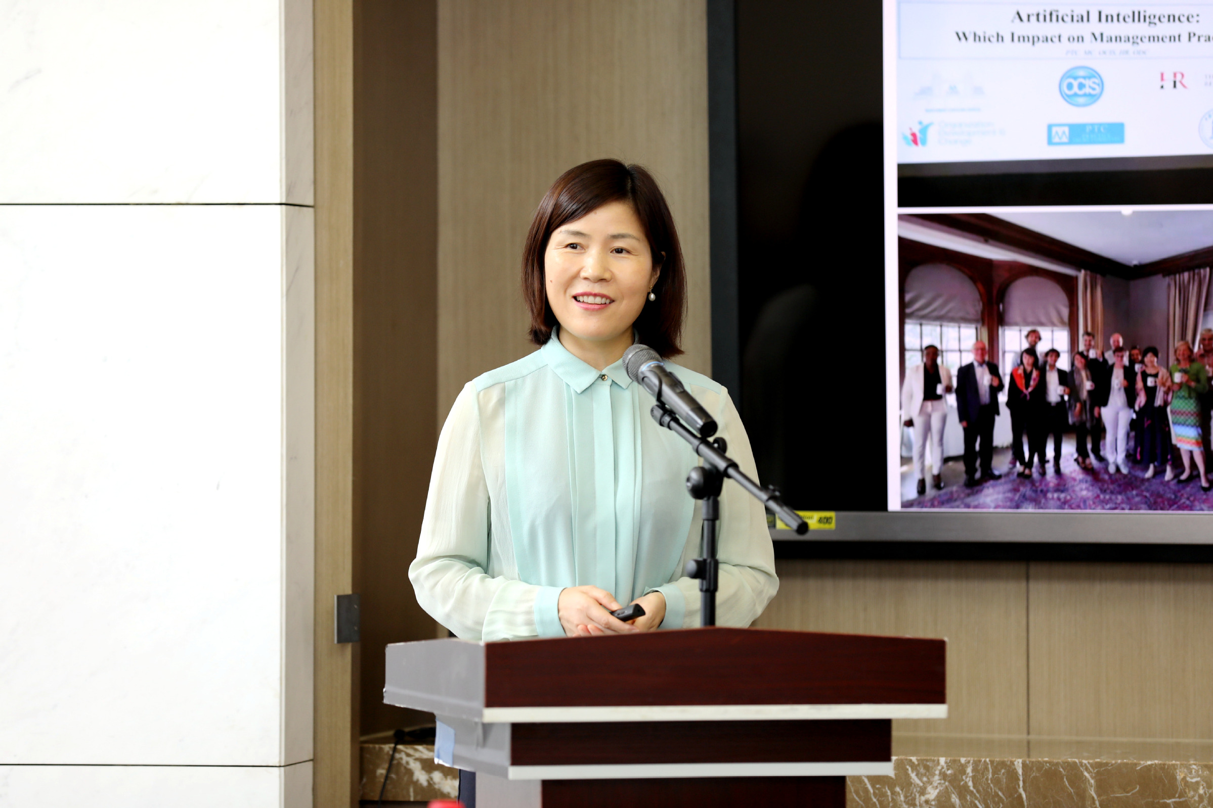 齐佳音向与会嘉宾介绍了研究院的研究工作。人工智能与变革管理研究院成立于2017年,是国内首家从经济管理视角推进人工智能发展的实体性研究院,研究方向包括探索先进技术与治理创新、组织数字化转型理论与实践、开源技术与开源商业、数字金融与数字贸易、新商科理论创新与实践等。