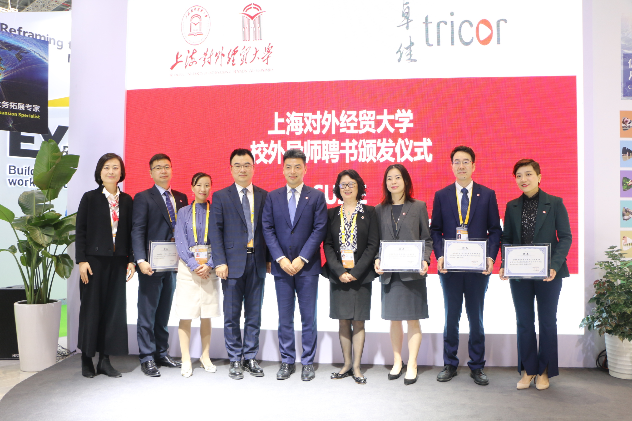 会计学院副院长杨慧辉、党委副书记张晴晴共同为此次受聘的卓佳中国财务官林建伟、首席运营官游旭挺、商务服务总监金峰梅、人力资源总监王艳颁发校外导师聘书。这也将继续丰富学院“三全育人”校外导师库资源,为学院人才培养、协同育人、产学互动提供更多有力支持。
