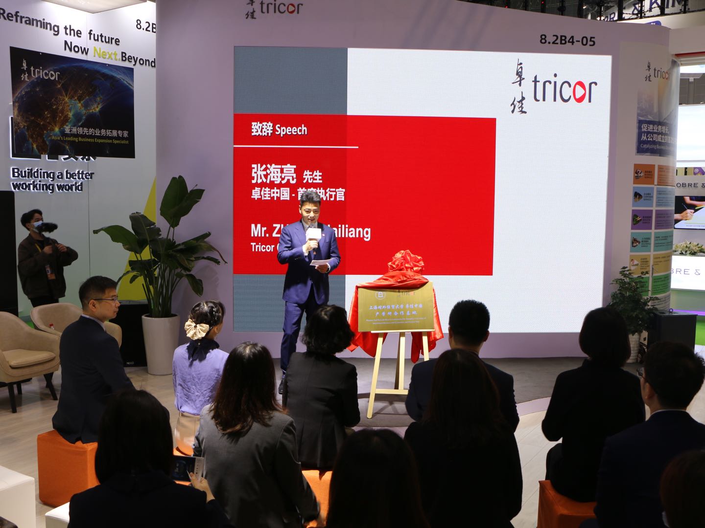 陈洁与张海亮共同为“必赢626net入口首页卓佳中国产学研合作基地”揭牌。