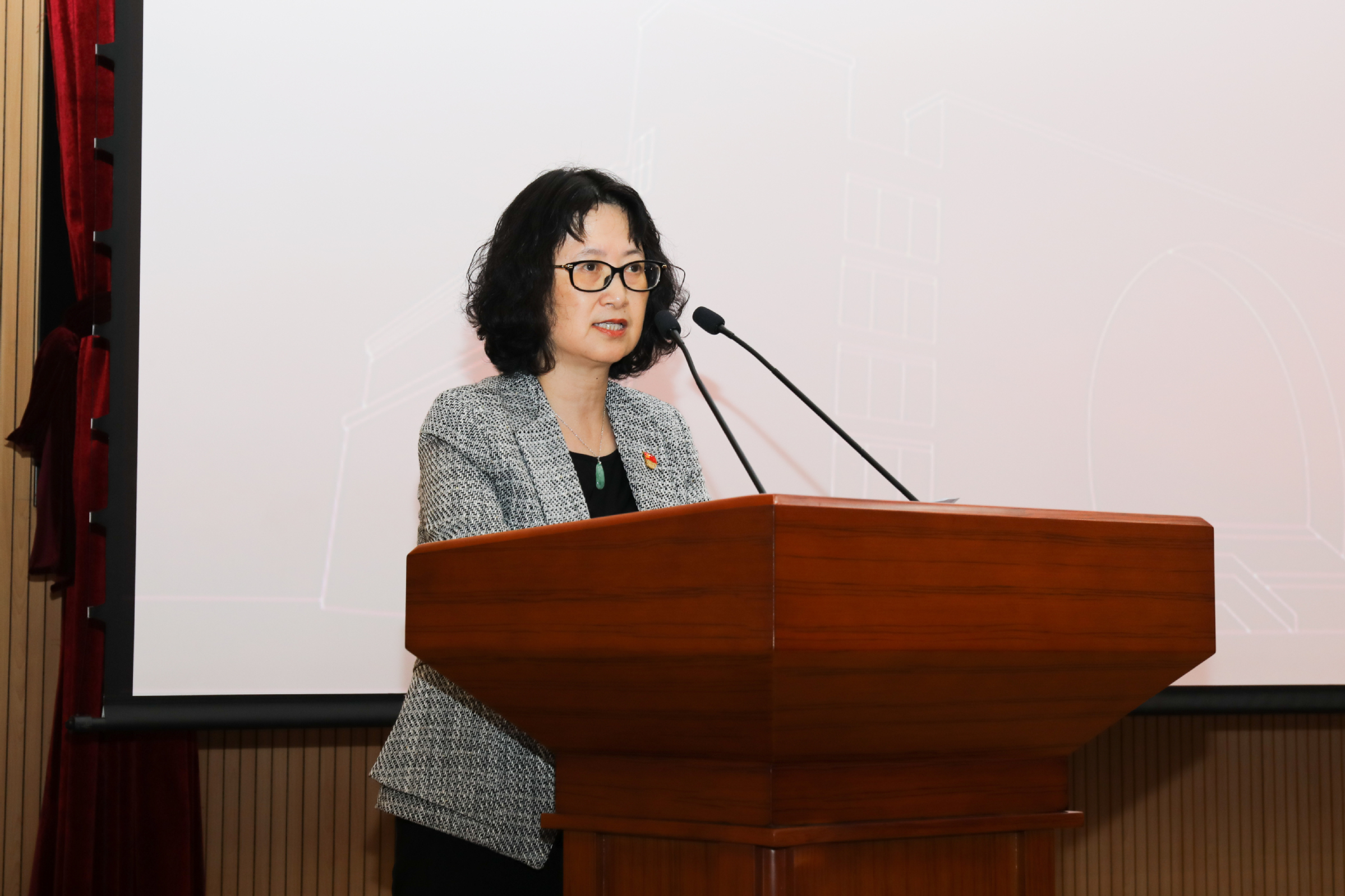 王群对“统信大讲堂”在图书馆成立表示祝贺。她阐述了“统信大讲堂”的设立对繁荣校园文化、丰富学生第二课堂的重大意义和对学校“新文科”“新商科”建设的积极推动作用。她表示,学校图书馆将积极发挥在信息咨询、信息流通等方面的资源优势,与统计与信息学院紧密合作,共同建设好“统信大讲堂”。
