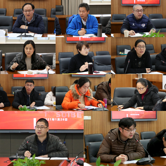 会上,部门代表唐颖峰、陈豪分别做了交流发言,各科室科长对2021年度工作做了简要介绍,朱阳、王磊、朱龙艳分别就2021年相关负责重点工作进行了部署安排。全体工作人员就2021年教学工作日程和学校一流本科教育“十四五规划”进行了交流讨论。最后,朱建明强调,2021年要在做好疫情防控工作的前提下,确保本科教学运行平稳有序,并重点做好教学成果奖申报、国家级一流专业、一流课程建设与申报、本科人才培养模式改革等工作。