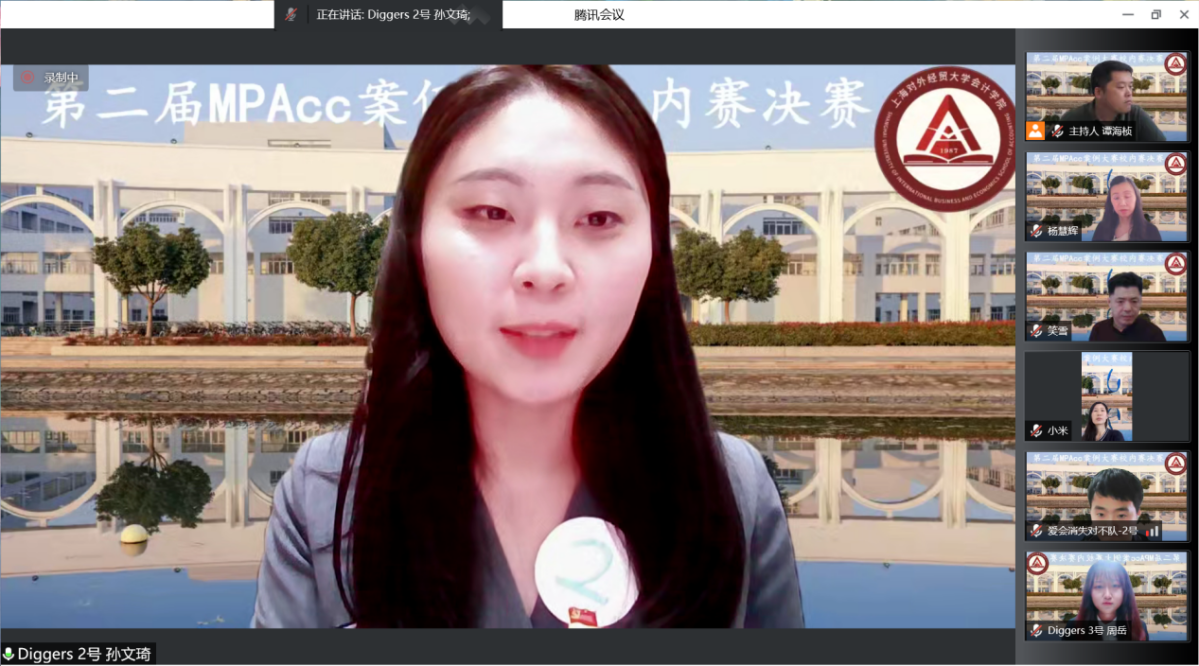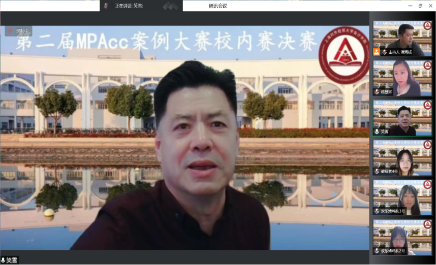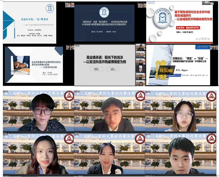 晋级决赛的6支队伍抽签确定分组。两两抗辩围绕“附业绩承诺的高溢价并购会计管理与财务战略”主题,展开激烈角逐。参赛队伍均展现了不俗的实力。虽以线上形式呈现,现场氛围仍然热烈,过程精彩、扣人心弦。