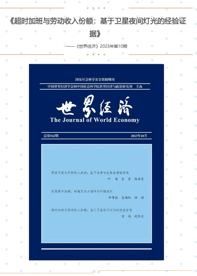 学术前沿|宣扬副教授合作论文《超时加班与劳动收入份额》在《世界经济》发表