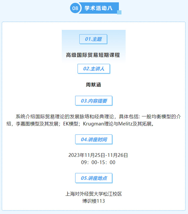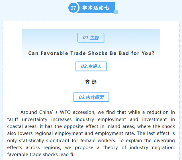 【上经贸大·科研】第十周学术活动预告