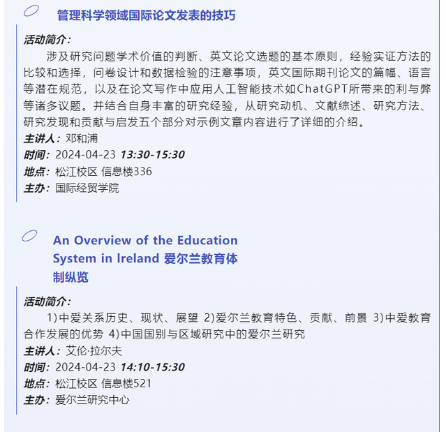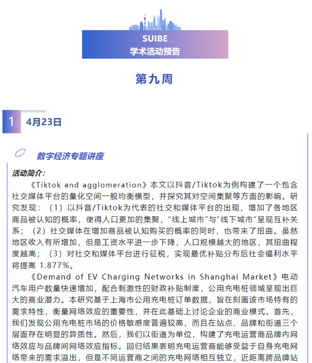【上经贸大·科研】第九周学术活动预告