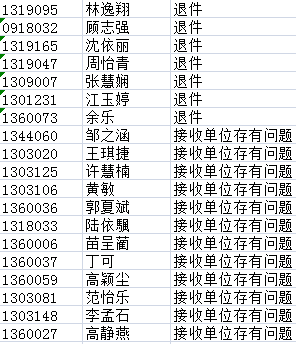 2017年7-9月学生档案退件及接收单位存有问题的名单