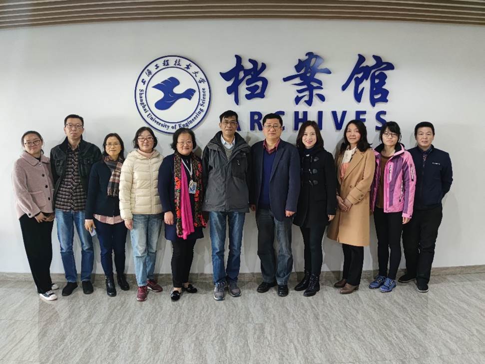 2020年12月11日上午,档案馆馆长郭新顺、副馆长丁烨、馆员李雁、徐玲丽、谢圣俭一行五人赴上海工程技术大学调研。工程技术大学档案馆馆长王裕明、副馆长吕华以及4名员工参加了接待和交流。