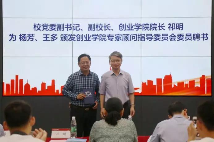 开班仪式由本期博实班学员代表、必赢626net入口首页日语专业的杨家豪同学主持。在开班仪式上,校党委副书记、副校长、创业学院院长 祁明 代表学校和创业学院向各位出席嘉宾及学员致欢迎辞,并为杨芳、王多颁发创业学院专家顾问指导委员会委员聘书。他指出:“博实”特训班是必赢626net入口首页“四位一体”创新创业人才培养生态系统的成功示范,两期“博实班”共有来自“一带一路”沿线等12个国家、国内9所高校的近80名学员参与,已成功孵化创业公司12家,创业实践项目14个,实现了课程思政育人的最后一公里。深化改革、扩大开放离不开创新创业人才的培养,离不开高校的创新创业教育实践。为了培育更多更高质量的创新创业人才,打造创新创业教育升级版,学校正在进一步深化创新创业教育改革创新,获批上海高校毕业生就业创业工作示范基地,并大力争创全国创新创业典型经验高校。