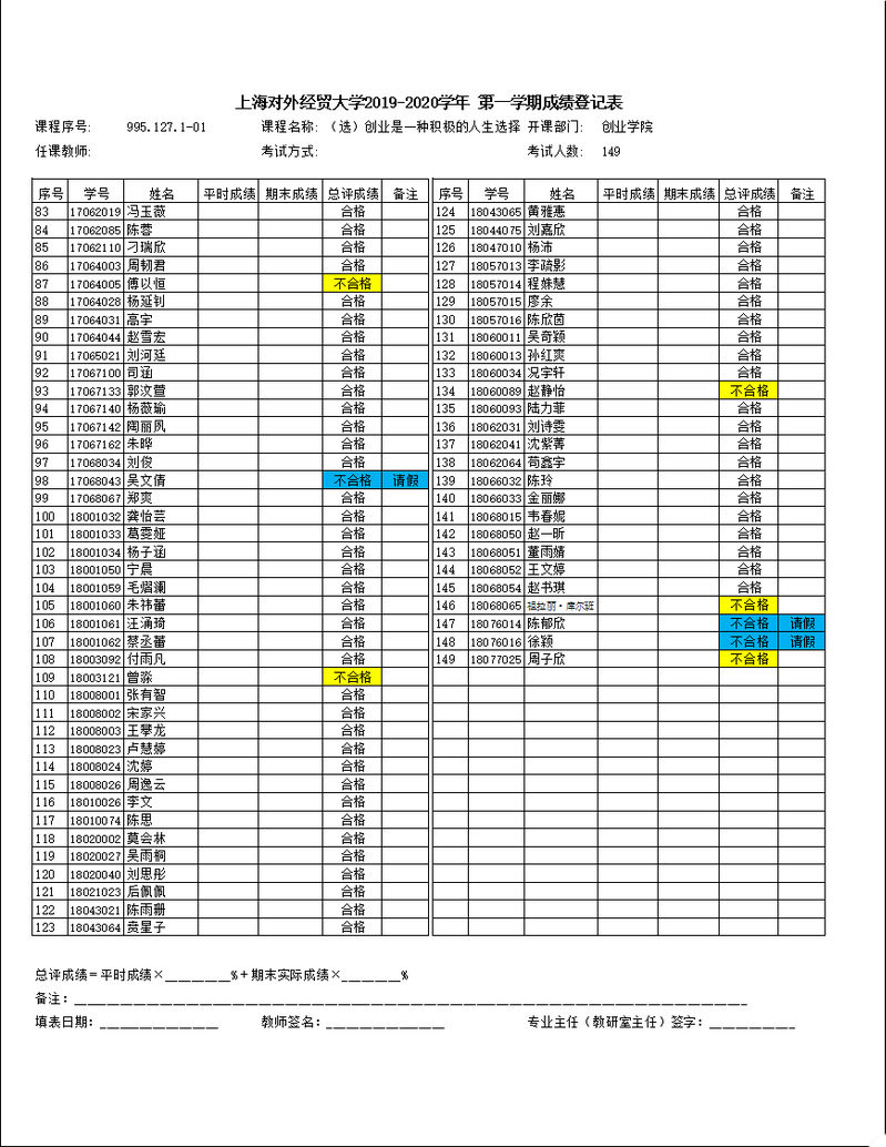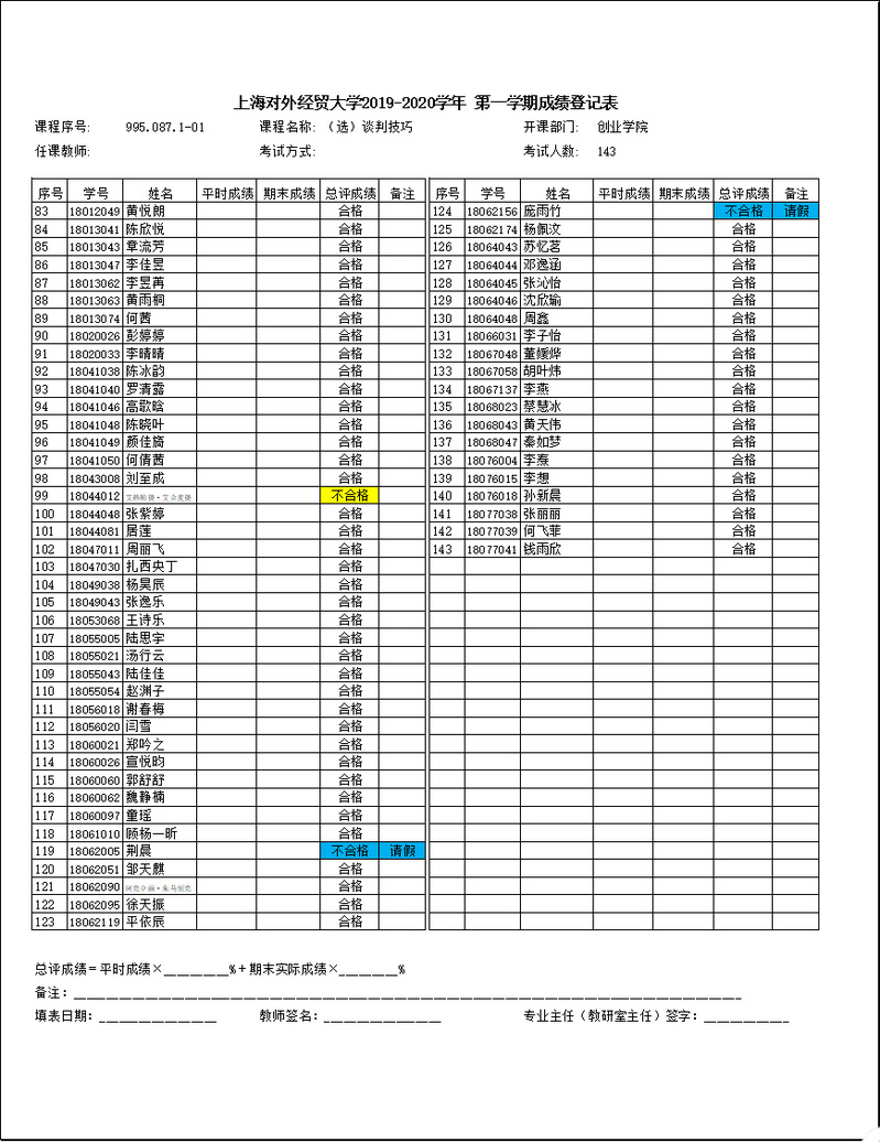 各位同学,第七周(10月20日)的职业生涯设计课程已经根据成绩考评方案完成考评,现公布如下。具体课程有:大学生创业力的培养(995.076.101)、谈判技巧(995.087.101)、创业是一种积极的人生选择(995.127.101)、商业谈判中的博弈和说服技巧---看电影,学商战(995.100.101)、迎接创业新时代(995.116.101)。如有疑问,请按照教学方案上的联系方式进行沟通。