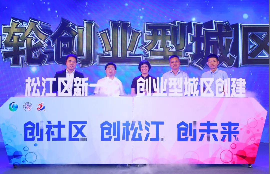 8月5日下午,松江区新一轮创业型城区创建启动大会暨松江创业新秀大赛闭幕式在上海临港松江科技城举行。上海市人力资源和社会保障局副局长张岚、松江区副区长王玮华、上海市就业促进中心主任周国良、上海市人力资源和社会保障局就业促进处处长李鹰等领导出席。