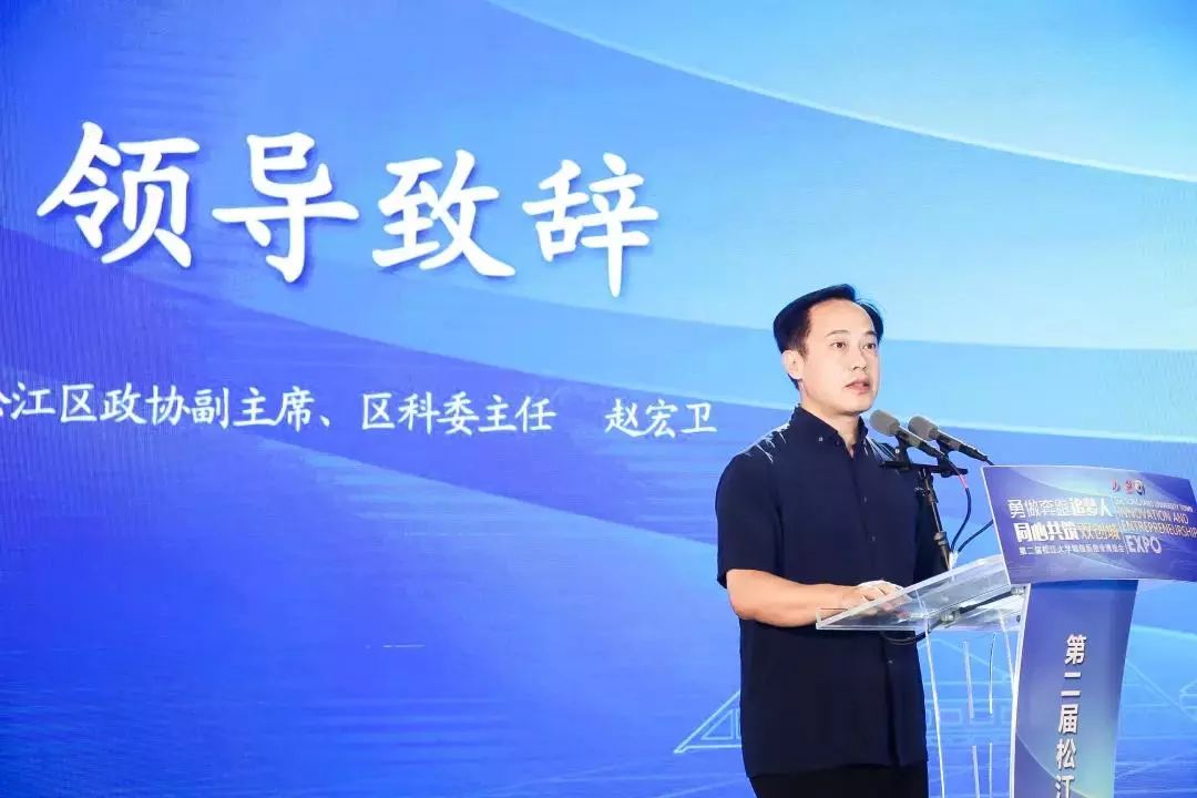 区政协副主席、区科委主任赵宏卫为本次活动致辞。他对大学生科研创新成果转化在推动松江大学城双创集聚区建设的重要作用表示肯定,同时希望广富林街道各级党组织利用好“七色桥”区域化党建联盟平台,融合大学城七所高校的创新创业学院、相关部门与集群党委的企业建立起紧密的双创集群,形成“双服双创”党建生态链和命运共同体,进一步激发大学生创业热情、提升创业能力、实现双创成果,将大学城双创集聚区打造成为创新创业的重要承载区和策源地。