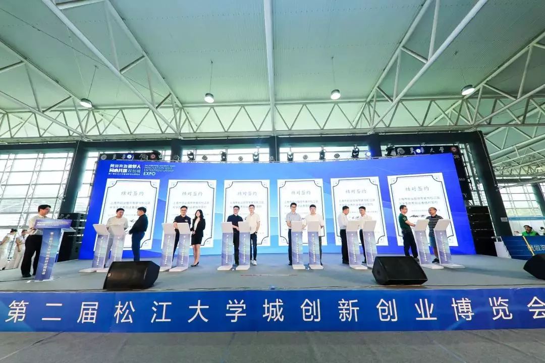 最后,上海市就业促进中心主任周国良,东华大学党委副书记崔运花,松江区政协副主席、区科委主任赵宏卫,区委组织部副部长、区社会工作党委书记吕颖群,松江区人力资源和社会保障局党委书记、局长彭再德,广富林街道党工委书记、人大工委主任吴浩波,广富林街道党工委副书记、办事处主任庄寿云上台共同启动第二届松江大学城创新创业博览会开幕暨“双创集聚行动”计划。