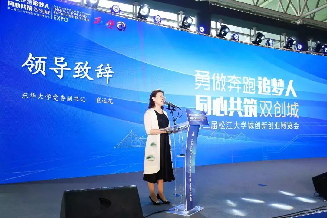 东华大学党委副书记崔运花为“双创集聚行动”计划启动仪式致辞。她提到,东华大学作为教育部直属、国家“211”、“双一流”建设高校,将坚持产学研用相结合的办学传统,依托国家和教育部科研基地,加强协同创新,在多年的教学、研究和实践中逐渐形成独具特色的“尚创”生态系统,在近年来也取得了一大批创新成果和荣誉。其次,作为松江大学城“七色桥”地校党建联盟驻区单位的一员,校党委以党建为引领,围绕发展大局,积极发挥学校在科技、人才、创新等方面的优势特色,主动融入区域化党建联建,充分发挥松江的产业创新优势和各高校的学科资源优势。
