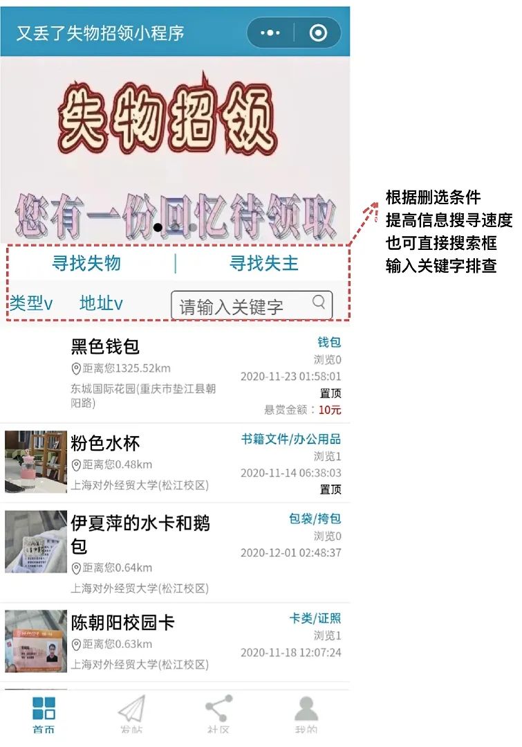 (点击上方蓝字即可跳转小程序失物社区板块)