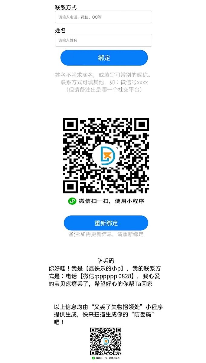 (点击上方蓝字即可生成自己专属的防丢二维码)