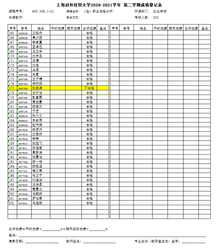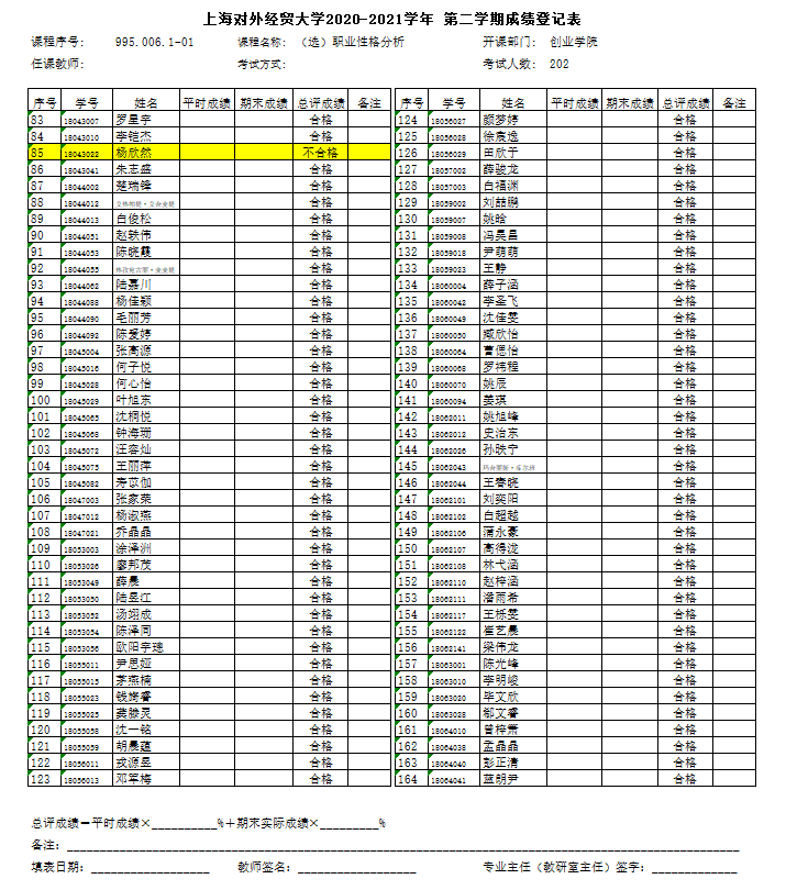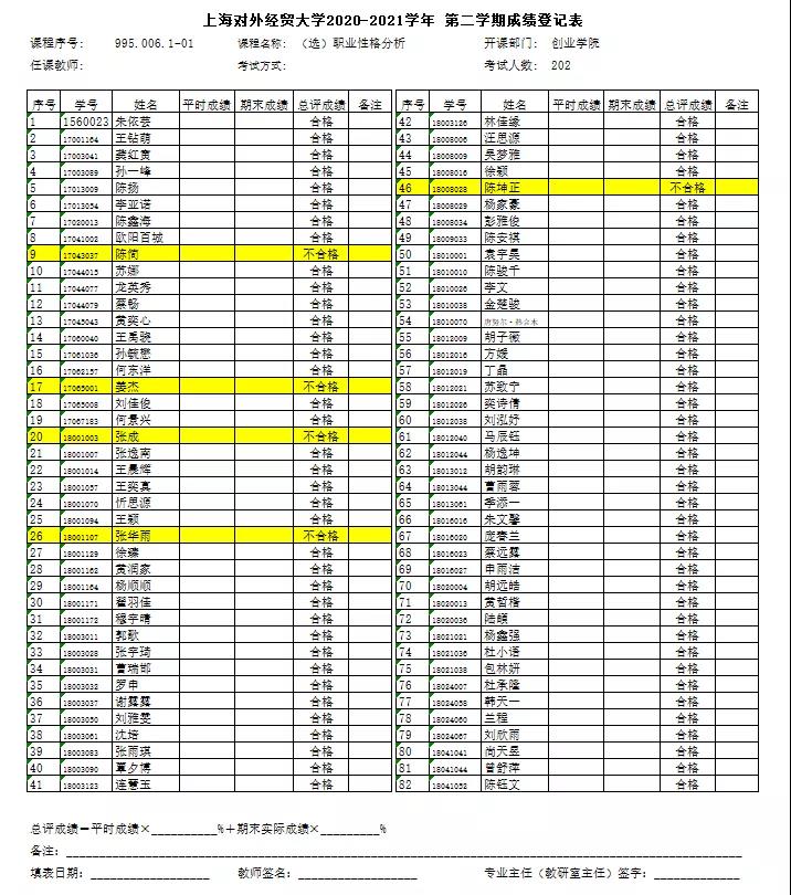 2020-2021学年第二学期第3周周日(3月21日)职业性格分析成绩公布