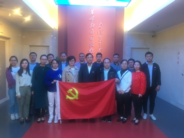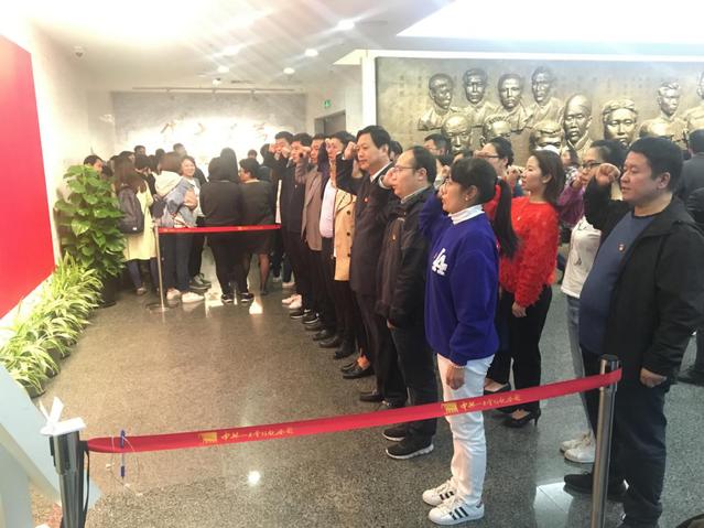 走进纪念馆大厅迎面看到的是一幅中国共产党党旗,在夏俊书记的带领下,同志们怀着无比激动的心情站在党旗前再一次重温宣誓起了入党誓词。通过参观,不仅仅是使党员接受了一次党的再教育,更是系统地了解了党建立、发展到成熟的革命历程,真切地感受到了革命先烈们抛头颅、洒热血的英雄气概,经历了一次梦境般的心灵涤荡。