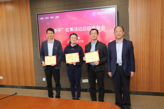会议通报了“金点子”征集活动的开展情况,机关党委委员严大龙同志宣读了《关于表彰机关作风建设“金点子”的决定》,机关党委向获奖同志颁发了证书和奖励。获奖代表商志民、巫雪松、杨向楠同志作了交流发言,分别围绕“设置机关新进人员培训月”、“定期召开机关学院具体工作人员联席会议”、“教职工体检健康电子档案”等,着重从“金点子”的转化运用和推进落实等方面对建议方案进行了优化完善和交流分享。