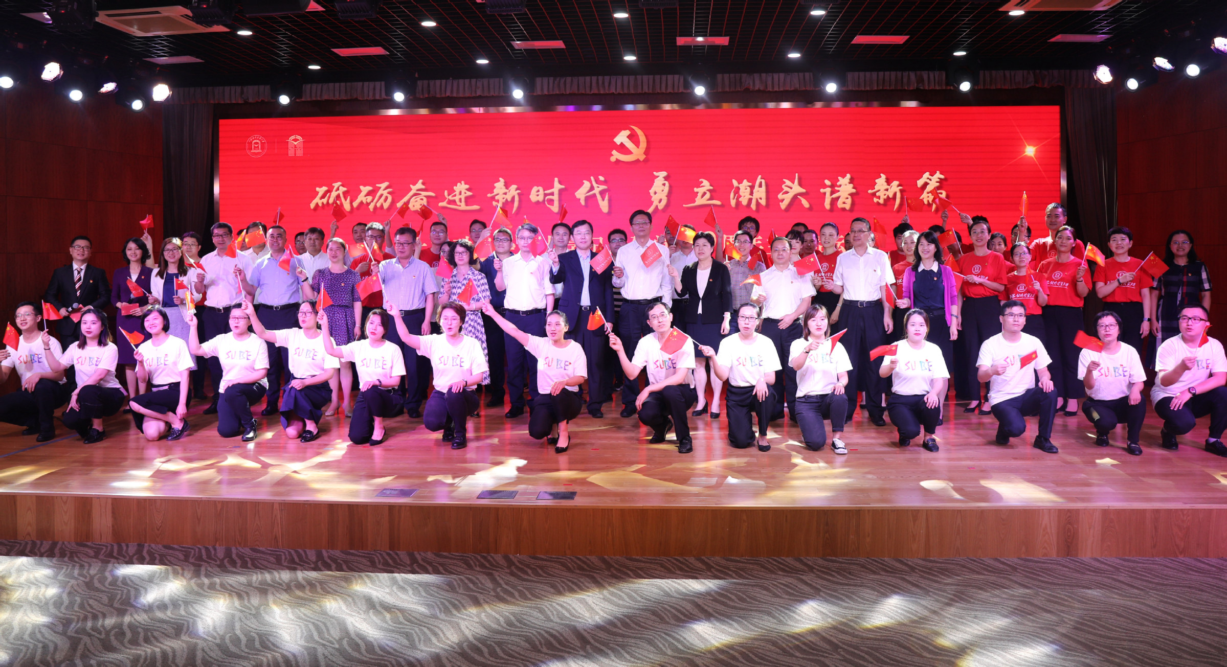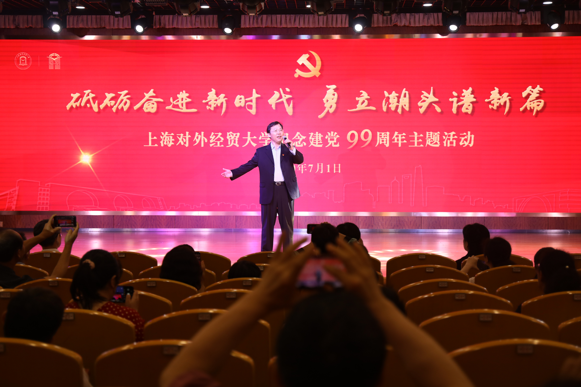 7月1日下午,“砥砺奋进新时代 勇立潮头谱新篇”——必赢626net入口首页庆祝建党99周年主题活动在松江校区图文信息大楼507报告厅举行。校领导班子全体成员,职能部门负责人,各二级单位党政负责人、教工党支部书记、专职组织员、教师代表共150余人出席主题活动。主题活动通过校园网同步直播,学校广大党员干部、师生员工在线观看了直播。
