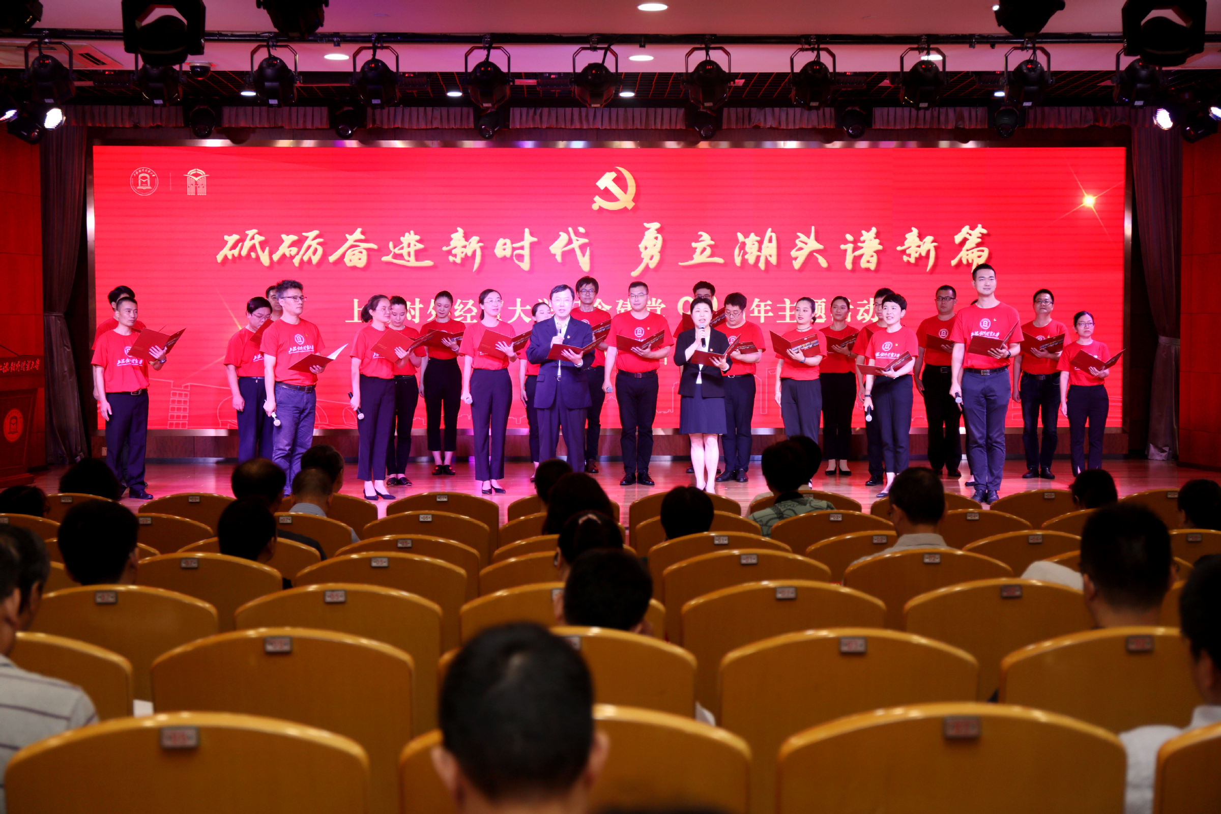 校党委副书记、校长汪荣明,校党委副书记、纪委书记许玫与第五期青年骨干教师培训班学员共同朗诵了原创诗歌《七月的赞歌》,并齐声高唱《没有共产党就没有新中国》,祝福党的生日。