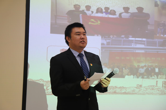 金融管理学院研究生第三党支部书记傅豪同学以《构建“一二三四”工作体系,全面推进支部组织力建设》为题,分享了支部结合研究生特点,在构建“一二三四”工作体系、提升支部组织力方面的特色做法。