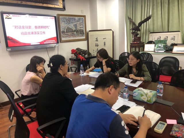首先,与会人员一起观看了“如何过好组织生活”学习微视频,结合前期党组织专项督查反馈意见,严格落实“三会一课”制度,进一步明晰支部台账,为规范“四史”学习教育奠定坚实基础。随后,各支部代表就本支部“四史”学习计划进行交流分享。会前,学院党委委员已同所联系的各师生党支部,就学习计划展开指导,不但丰富了支部的学习内容,更提升支部的学习站位。交流中,各支部书记分别抓住六月、九月、十月、十一月等重要节点,分享了“四史”学习计划和具体实施方案。采用包括校内志愿服务、外出红色寻访、线上观展学习、联组共建调研、支部读书会、书记党课等多种形式,把“四史”教育融入日常的同时,开展创新让教育形式活起来,不断激发党员群众学习“四史”的热情。大家表示,将立足上海金融中心建设,通过开展可观、可感、可参与的学习活动,“沉浸式”推进“四史”学习教育,让学习教育走实、走深、走心。