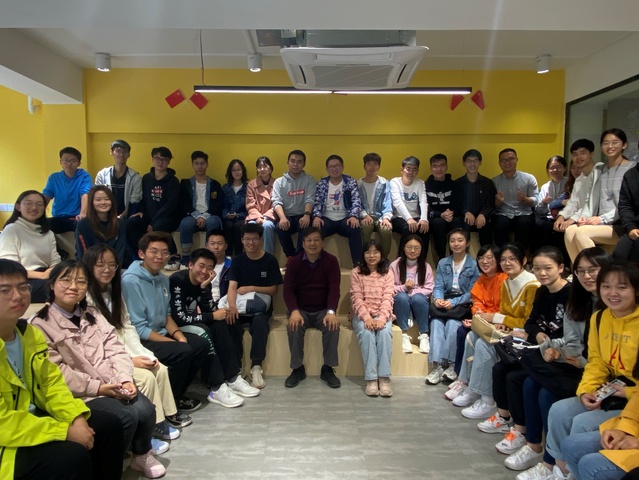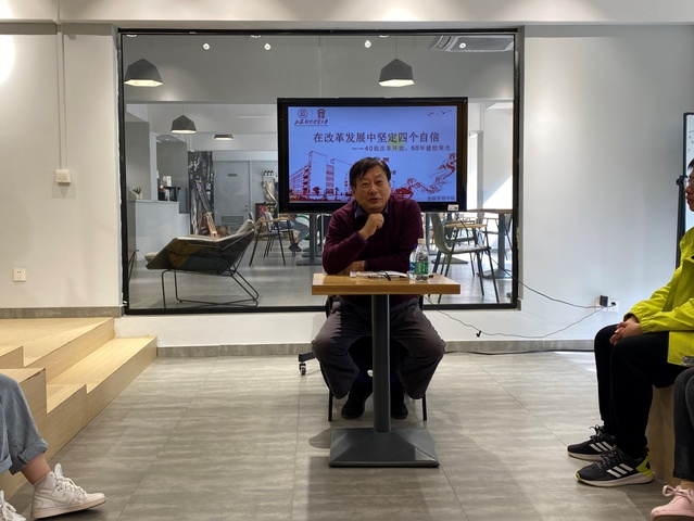 学院党委将新生入党启蒙教育作为基层党建的大事来抓,提前谋划,整合资源,注重创新,采取线上线上相结合、校区社区相结合、理论培训与实践活动相结合的方式全面铺开。2020年10月29日,继线上入党启蒙教育大会、与党员教师同走改革开放路、研究生党员为新生服务导航等活动后,学院党委结合“四史”学习教育和六十周年校庆,特别邀请校关工委秘书长、原学院党委书记金道明老师以“在改革发展中坚定四个自信”为主题,在学生社区创享家路演室,讲述改革开放背景下的校史、院史座谈分享。2020级辅导员关文博、侯珏老师与35位新生入党申请人主动参与、认真聆听,并与金老师积极互动,交流入党相关疑问,展现了2020级新生对党的向往和热爱。座谈由侯珏老师主持。