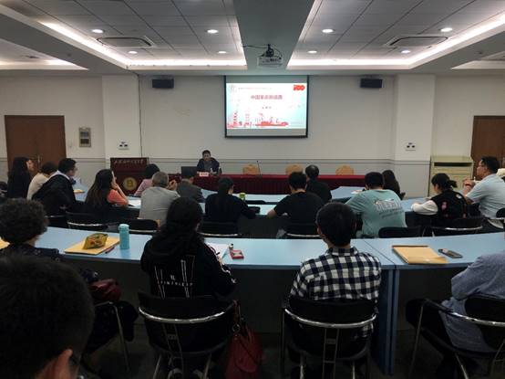 翟海涛以《中国革命新道路》为题,讲述了三个关键问题:为什么要走武装夺取政权的道路?为什么要从城市转向农村?为什么要将马克思主义中国化?