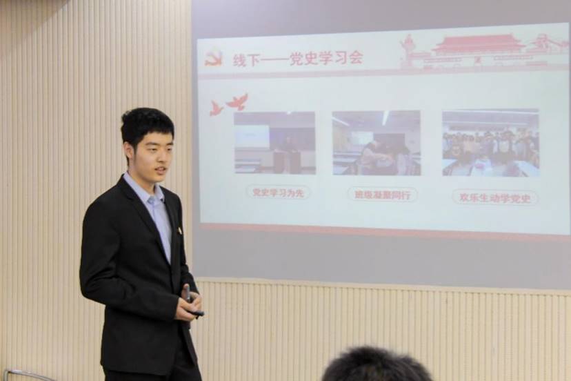 在答辩开始后,参与答辩的各位团支部书记依次上台,向在场的各位评委对本支部本学期“青春向党·奋斗强国”团日活动的开展情况进行展示。在展示过程中,各位团支部书记不仅分享了各自团支部在团日活动中的活动感悟与经验教训,同时对本次团日活动开展过程中团支部生成的各类红色文化创意作品进行了展现。在每一个团支部完成自己的答辩展示后,各位评委老师也对相关支部现场答辩的表现与团日活动开展状况进行了点评,并对今后团日活动的工作开展方向进行了指导。各团支部书记在这一过程中收获颇丰。