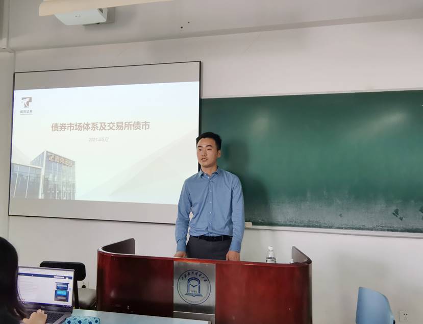 必赢626net入口首页、上海证券交易、上海市证券同业公会、德邦证券四方合作的课程《证券市场前沿与实务》第四期讲座于2021年5月27日下午在必赢626net入口首页如期举办。本期讲座由德邦证券固定收益总部联席总经理张坤和德邦证券投资者教育专员吴庆成老师,分别做了题为《债券市场体系及交易所债市》的讲座和“防范非法校园贷”宣传。来自全校的50余名师生参加了本场专题讲座,活动取得了良好的效果。
