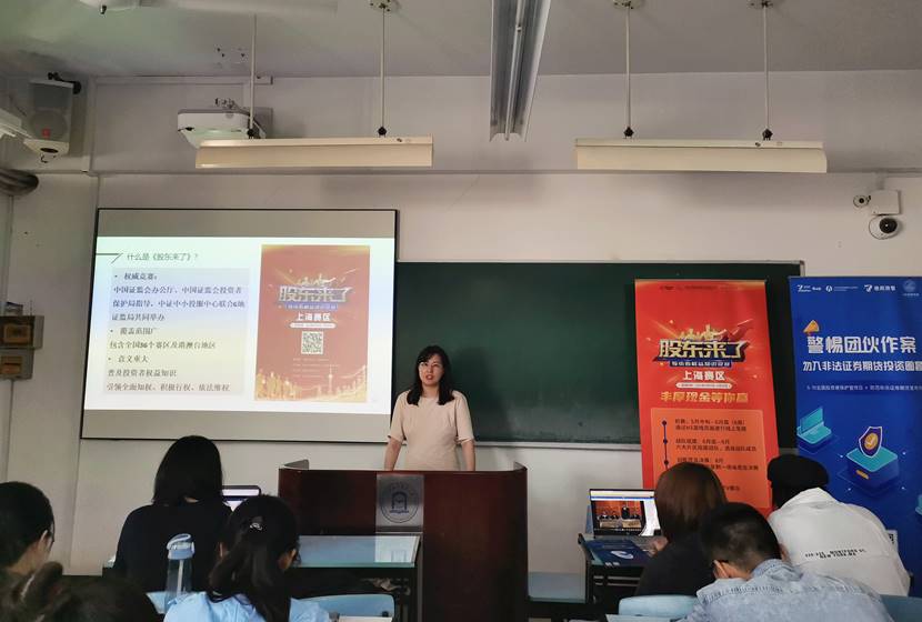 随后,德邦证券投资者教育专员吴庆成老师就“防范非法校园贷”为同学们做了普及,通过案例解读告诫同学们提高警惕认清非法“校园贷”真面目,并对中证中小投资者服务中心组织的2021年“股东来了”投资者权益知识竞赛活动进行了介绍,在场学生积极扫码参与了活动。