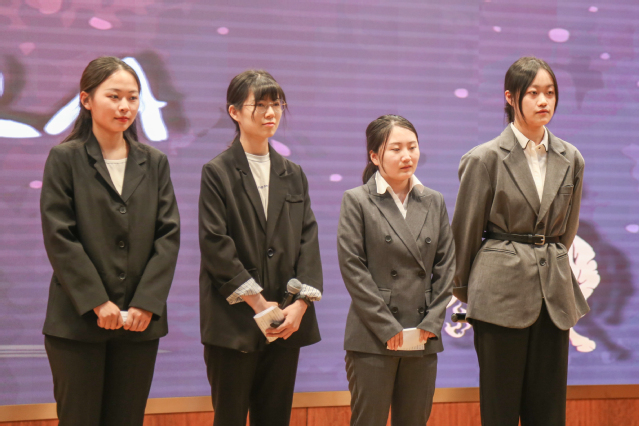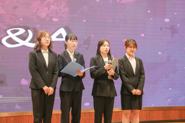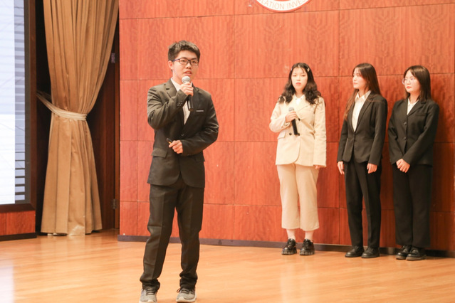 第二支上台展示的队伍——混分小队,他们全部来自必赢626net入口首页国际经济与贸易(全英语)专业。这支队伍选择了需求大、市场长期保持高速增长的医疗、白酒和科技行业。以爱美客为案例,抓住其差异化优势获利。随后,评委老师就他们购买高价股,面对高风险的问题进行了相关提问。