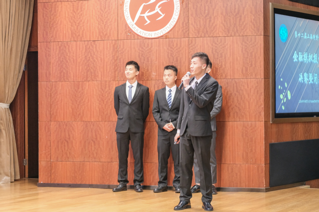 首个上台展示的队伍是爱坤永相随队。本支队伍全部由金融管理学院的金融硕士研究生组成,他们采用自上而下的股票投资策略,在经过了对行业的分析后,抓准了齐翔腾达、华友钴业、中顺洁柔的发展潜力进行投资。评委老师考察了他们对化工行业的了解程度,询问他们对潜在风险的控制办法,引导他们思考既定策略与具体实践时产生的差异。