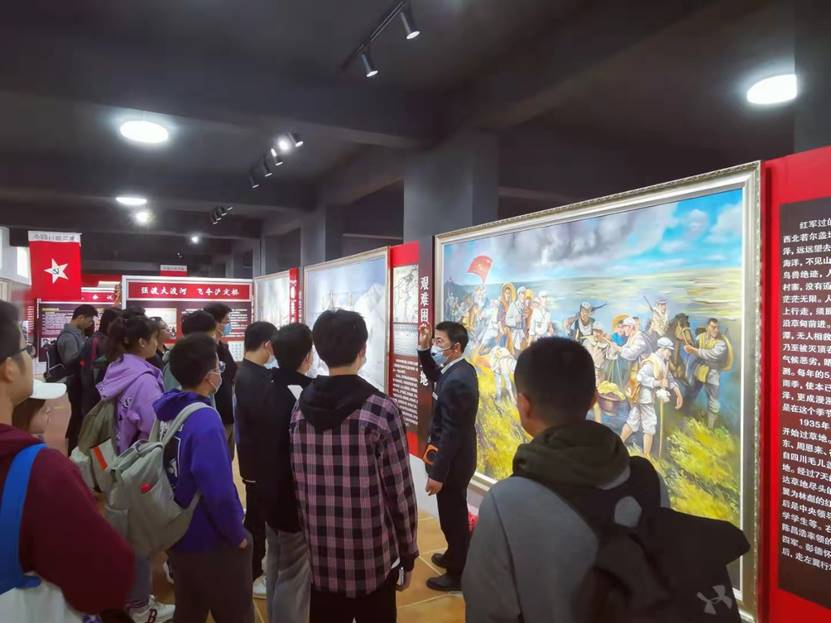 同时,冯老师鼓励师生走好新时代的长征路,为实现中华民族的伟大复兴而不懈努力!参观师生纷纷发表了对于如何走好新时代长征路的所思所想,并在长征时期红军领导人群像前一同朗诵了毛泽东同志的《七律·长征》,感受着革命先辈们不怕远征难,不顾铁索寒,走过万水千山的坚定意志与信念,踏上新的征程。(文/郝珺 徐同飞)