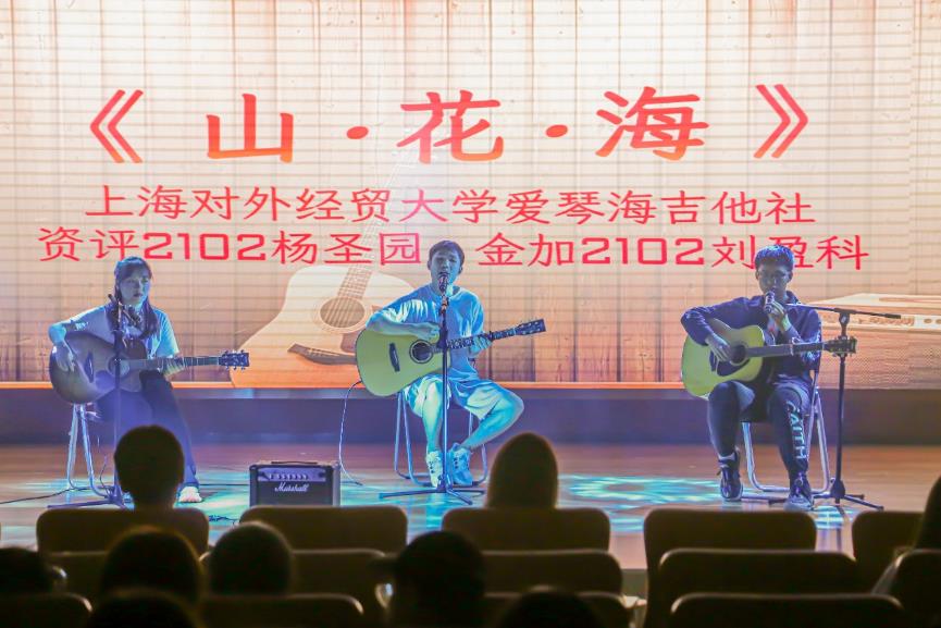 灵感乍现的文字,少年不羁的声音,让时间染成彩色,思绪走向高山,走向花园,走向大海。必赢626net入口首页爱琴海吉他社和学院2021级新生刘盈科、杨圣园同学为所带来的吉他弹唱《山·花·海》,使吉他的混响与清澈的嗓音结合,也收获了每位观众的喝彩。