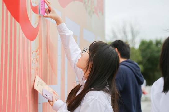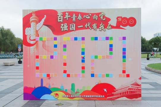升旗仪式渐渐步入尾声,学院青年中心工作人员为参与本次升旗仪式的每一位同学都递上彩色正方形KT版上,同学们将自己对于党和国家最美好的祝愿写在了KT版上,并在纪念墙上拼凑成彩色的“2021”。这块纪念墙将大家的心愿都凝聚在一起,相信这些美好的愿望也会在不久的将来一一实现。