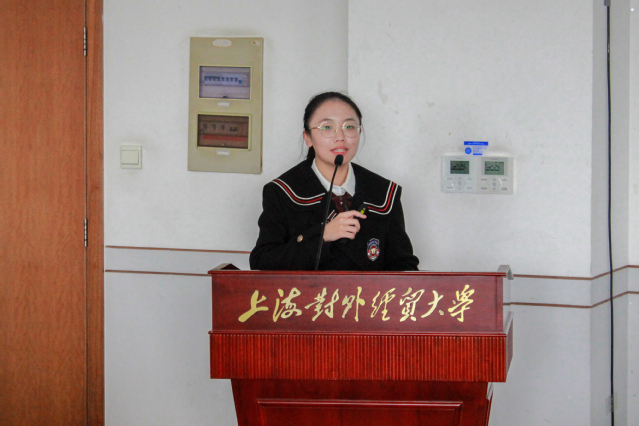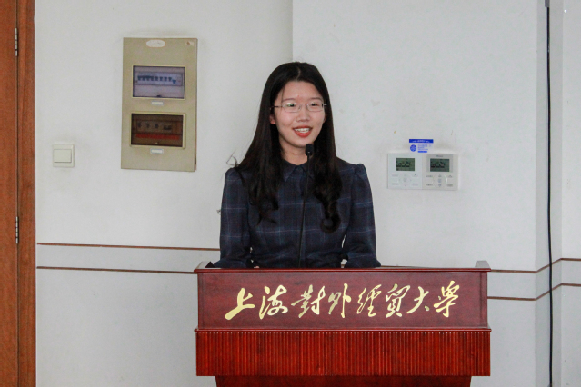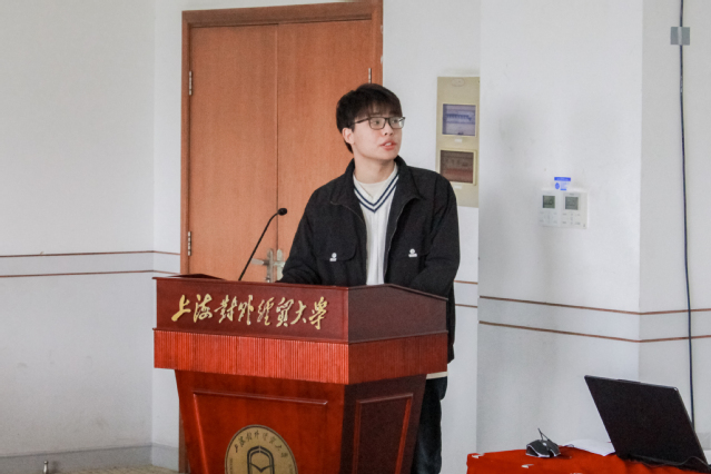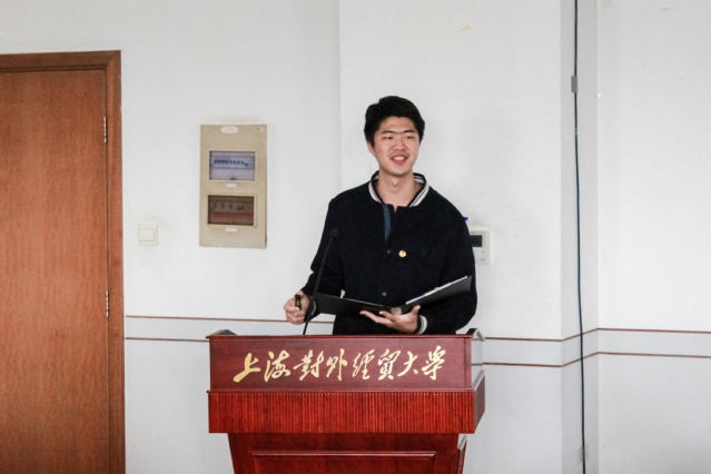 稍作休息过后,上海外国语大学国际金融贸易学院学生会主席团代表王羽飞同学以“十个数字”作为切入点对学院团委、学生会的组织架构、改革发展方向、专设活动等进行了整体介绍。