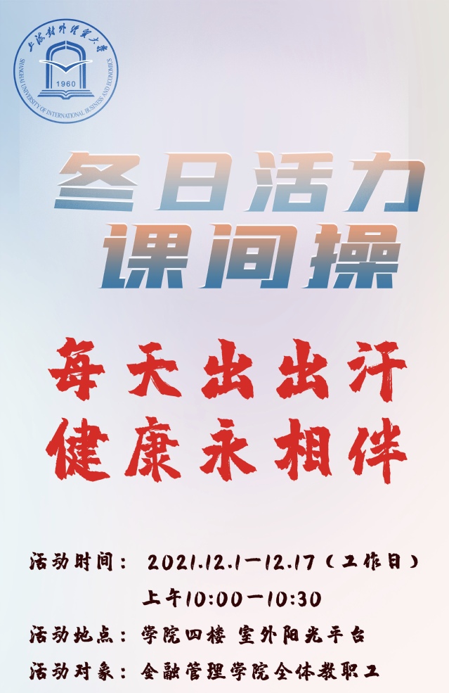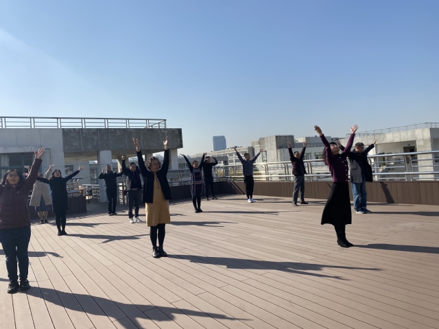 拥抱冬日暖阳,强健教师体魄,学院工会关注教师身心健康,积极组织教职工开展体育活动,自12月3日以来,学院每天在博萃楼4楼阳光平台开展“冬日活力课间操”活动,受到了全院教职工的热烈欢迎和积极参与。