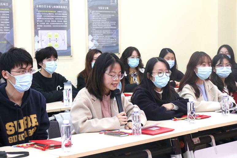仪式结束后,上海立信资产评估有限公司名誉董事长张美灵、人事经理刘珏与获奖学生进行了座谈。从行业发展、学生职业规划、岗位职责与需求、实践经历等方面与学生进行了互动讨论。