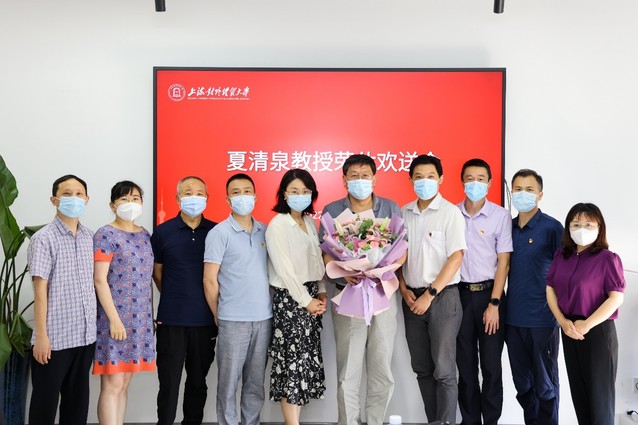 辛琳副院长为夏清泉教授献上鲜花、应尚军副院长为夏清泉送上学院的荣休纪念品。