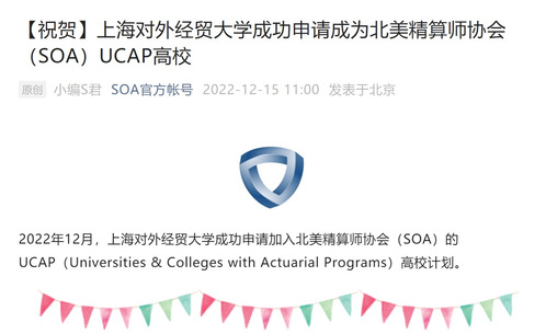 2022年12月,保险学专业成功加入北美精算师协会(SOA)UCAP-AC(Universities & Colleges with Actuarial Programs-Advanced Curriculum)高校计划。这是保险学专业建设的一项重要成果,标志着保险学专业的精算教育已获得国际认可。