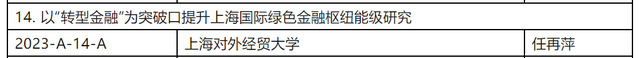 我院陈晓静老师的课题《发挥在沪外资企业“在上海、为全球”作用研究》和任再萍老师的课题《以“转型金融”为突破口提升上海国际绿色金融枢纽能级研究》成功中标。