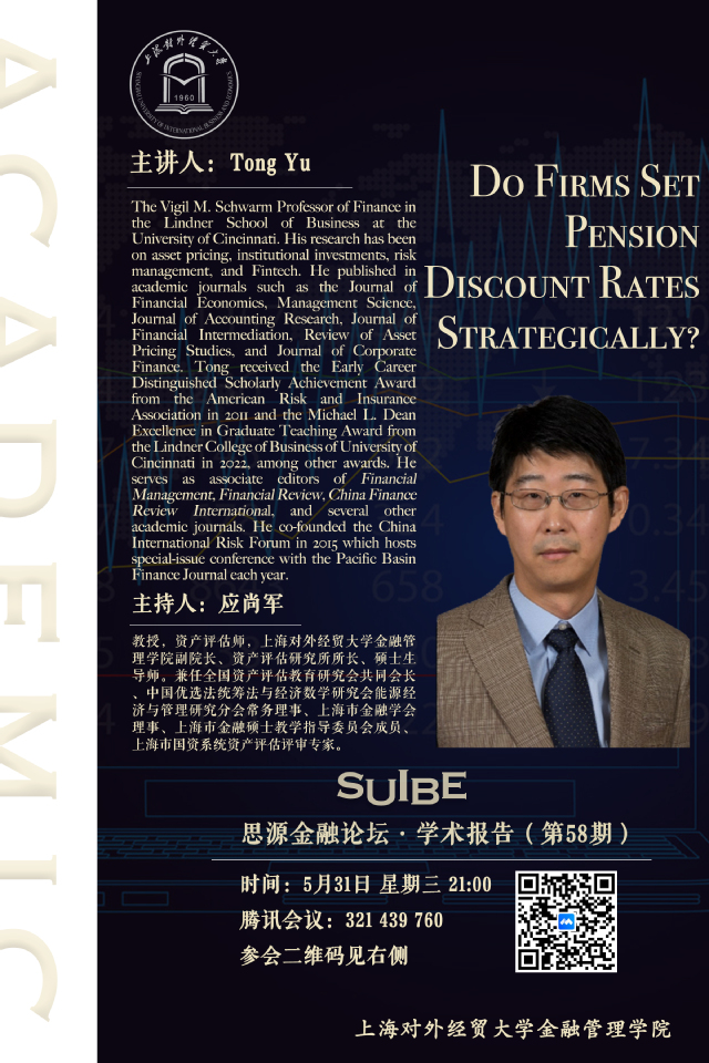 【SUIBE思源金融论坛——学术报告第58期】Do Firms Set Pension Discount Rates Strategically?