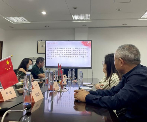 参观结束后,师生党员与上海财经大学金融学院银行系教工党支部开展座谈交流。上海财经大学金融学院党委书记刘莉亚、党委副书记秦文佳、银行系教工党支部书记曹啸及支部党员教师代表,对我院师生党支部的来访表示欢迎,期待通过本次调研交流,双方可以加深对新时代党建工作促进专业建设的认识。